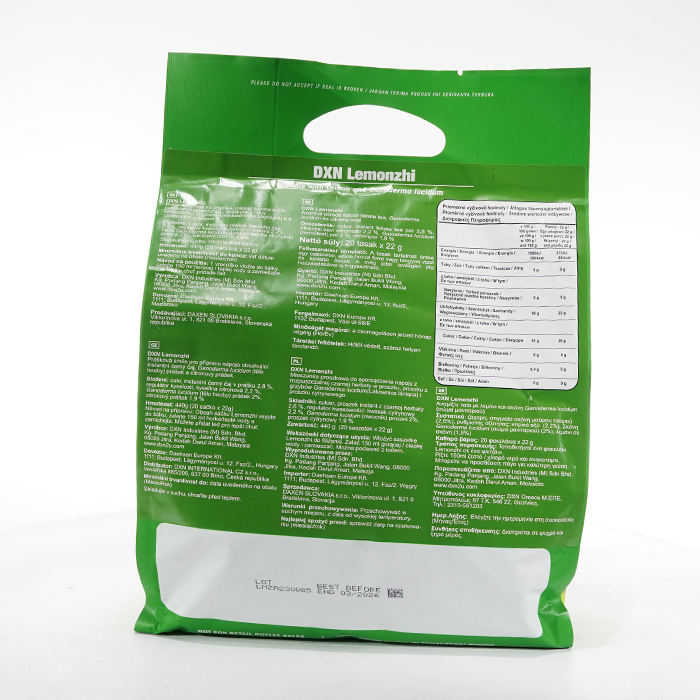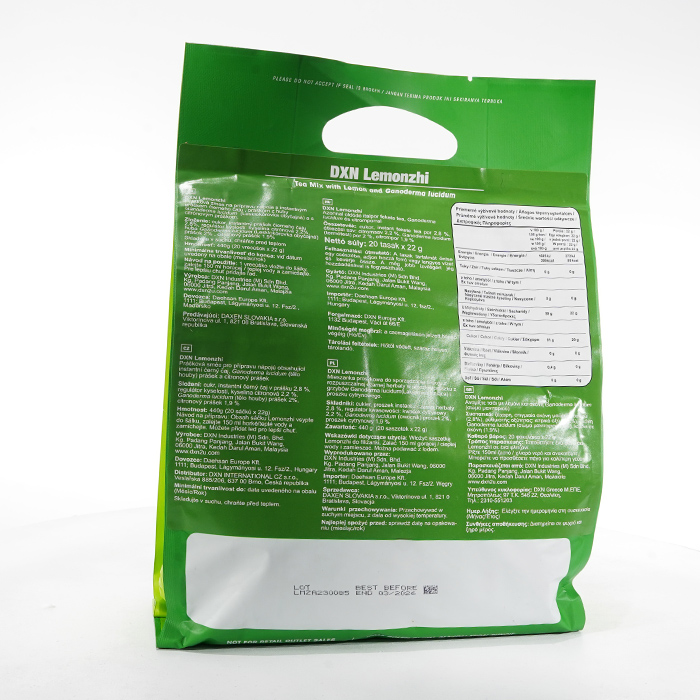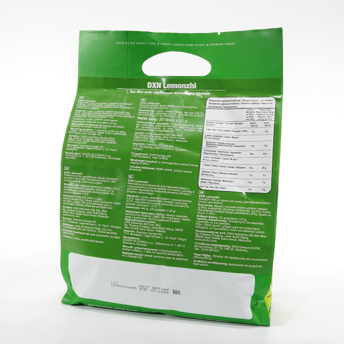 DXN Lemonzhi nieustannie gwarantuje świeżość. Zdecydowanie zalecamy zapoznanie się z etykietami i instrukcjami dotyczącymi wszystkich towarów przed ich użyciem, a nie poleganie wyłącznie na informacjach dostarczonych przez DXN. Opis produktu nie został zweryfikowany przez odpowiednie organy. Ten produkt nie jest przeznaczony do leczenia, łagodzenia skutków lub zapobiegania jakimkolwiek chorobom.
