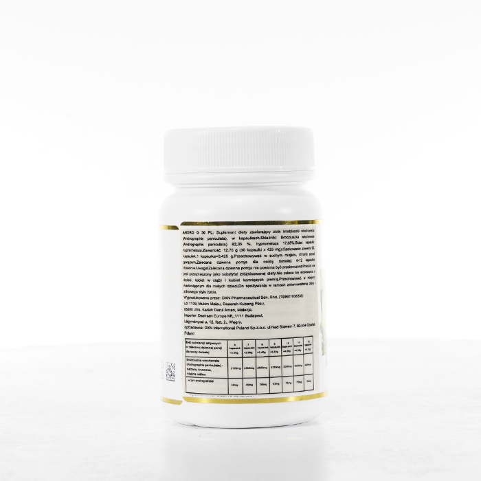 Andro-G 30 nieustannie gwarantuje świeżość. Zdecydowanie zalecamy zapoznanie się z etykietami i instrukcjami dotyczącymi wszystkich towarów przed ich użyciem, a nie poleganie wyłącznie na informacjach dostarczonych przez DXN. Opis produktu nie został zweryfikowany przez odpowiednie organy. Ten produkt nie jest przeznaczony do leczenia, łagodzenia skutków lub zapobiegania jakimkolwiek chorobom.