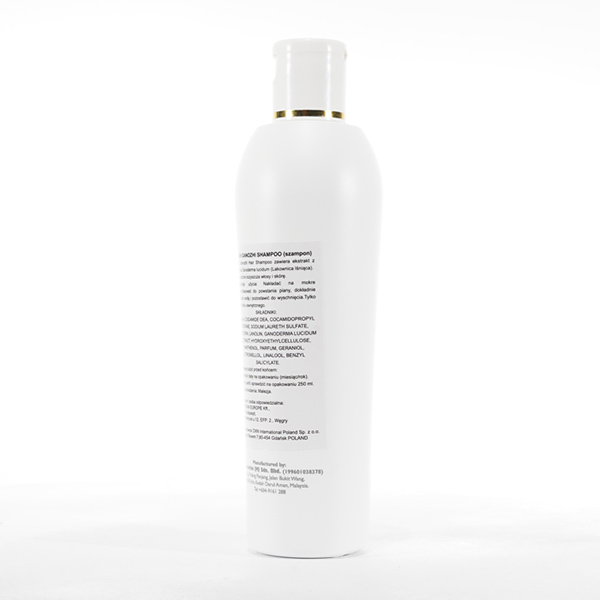 Szampon zawiera naturalne składniki, w tym ekstrakt z Ganodermy, który pozyskiwany jest z grzyba Ganoderma. Ganoderma jest znana ze swoich właściwości przeciwutleniających i przeciwzapalnych, które mogą pomóc w promowaniu zdrowych włosów i skóry głowy.