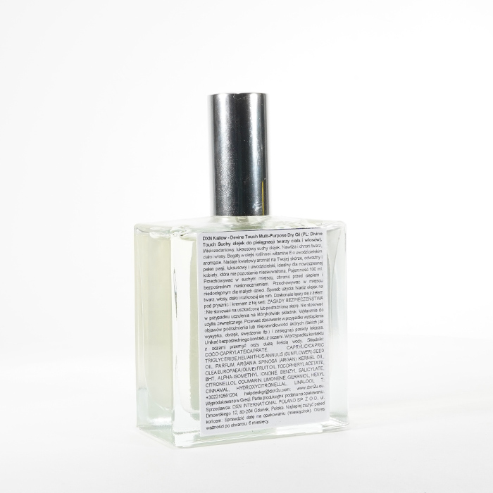 DXN Kallow - Divine Touch Suchy Olejek do Pielęgnacji Twarzy Ciała Włosów jest idealnym towarzyszem dla nowoczesnej kobiety poszukującej niezapomnianych i olśniewających wrażeń w codziennej pielęgnacji skóry i włosów.