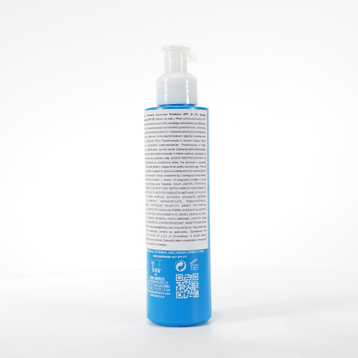 Dzięki unikalnemu połączeniu składników, ta emulsja przeciwsłoneczna ma na celu ochronę skóry przed szkodliwym działaniem promieni słonecznych, jednocześnie utrzymując ją w odpowiednim nawilżeniu i wspomagając regenerację skóry.