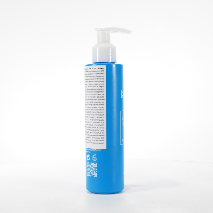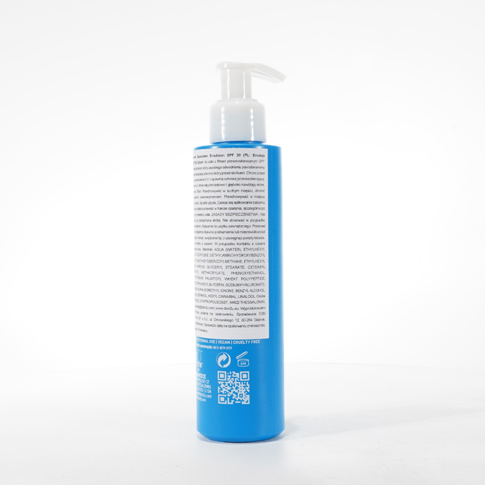 DXN Kallow - Emulsja Przeciwsłoneczna SPF 30 wyróżnia się jako zaawansowana emulsja przeciwsłoneczna. Wzbogacona kwasem hialuronowym, nie tylko zapewnia ochronę SPF 30, ale także zapobiega odwodnieniu spowodowanemu ekspozycją na sól lub chlor. Ta wyjątkowa emulsja skutecznie chroni skórę przed szkodliwym promieniowaniem UV, a także zapewnia ochronę antyoksydacyjną. Zawiera glicerynę i witaminę E, zapewniając natychmiastowe i głębokie nawilżenie skóry, jednocześnie wspomagając jej regenerację, co czyni ją wyjątkowym wyborem do ochrony przeciwsłonecznej i pielęgnacji skóry.